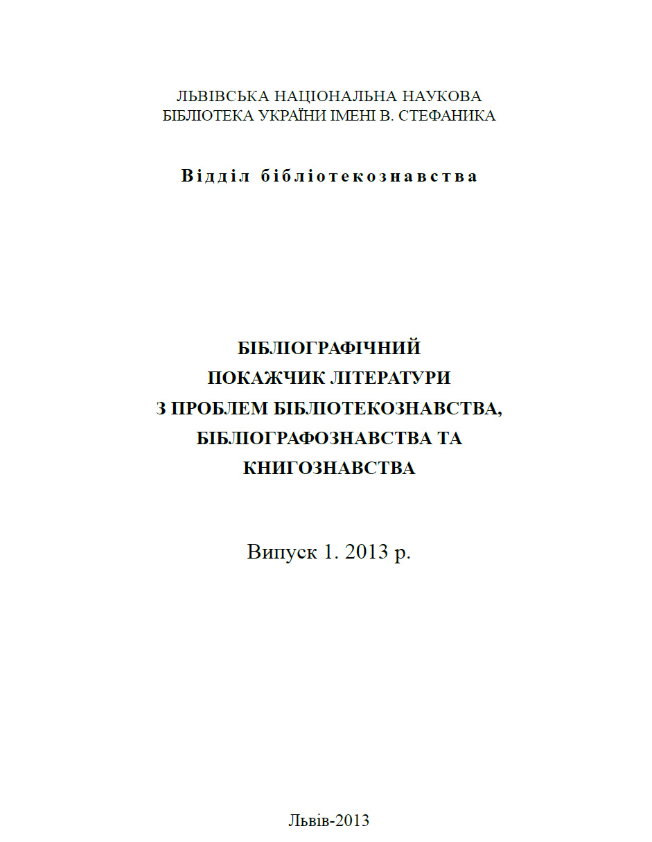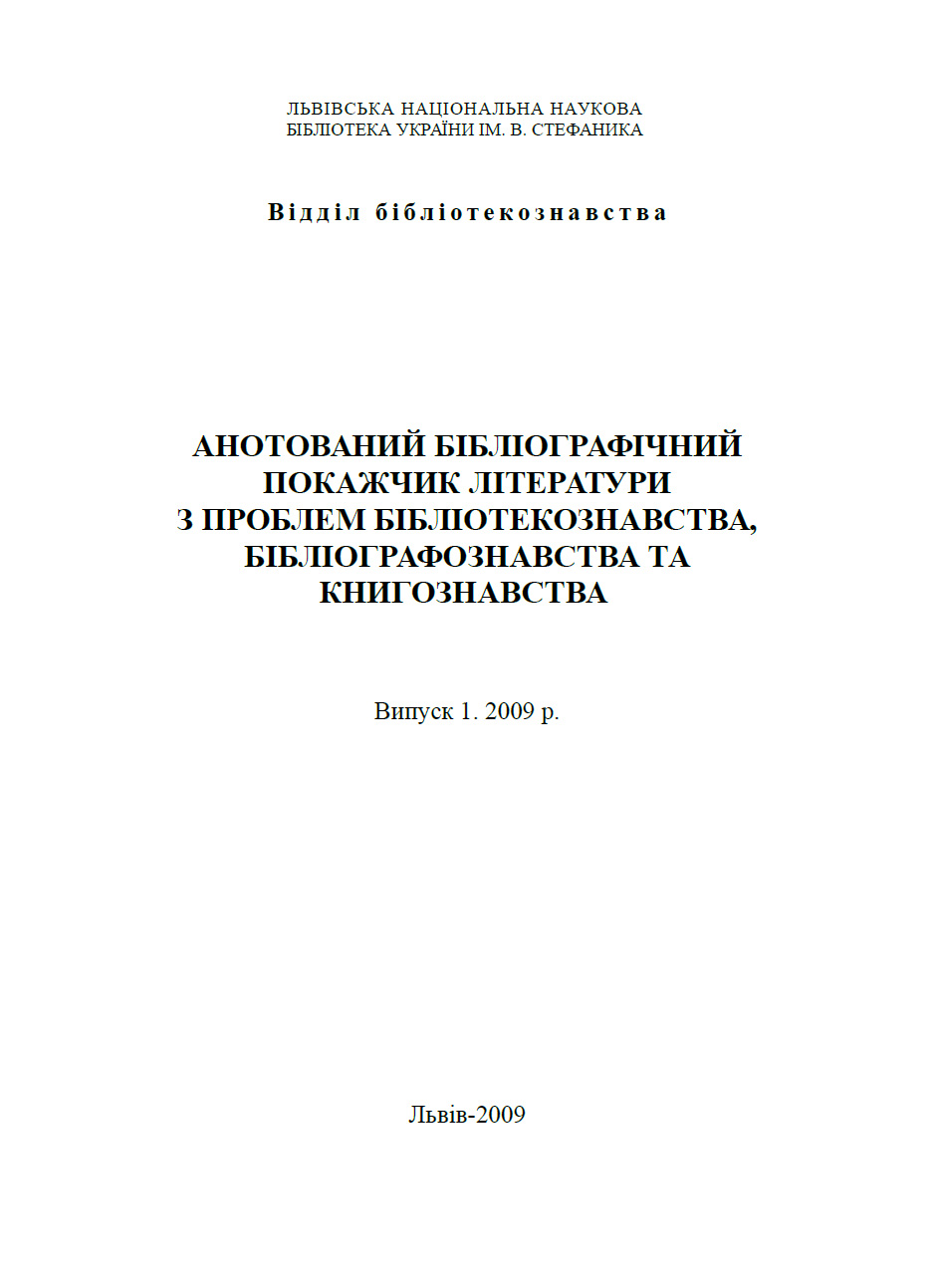 Анотований бібліографічний покажчик літератури з проблем бібліотекознавства, бібліографознавства та книгознавстваАрхів випусків 2012: 2011: 2010: 2009: