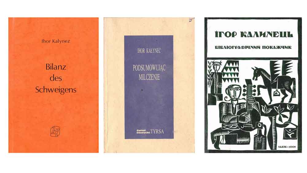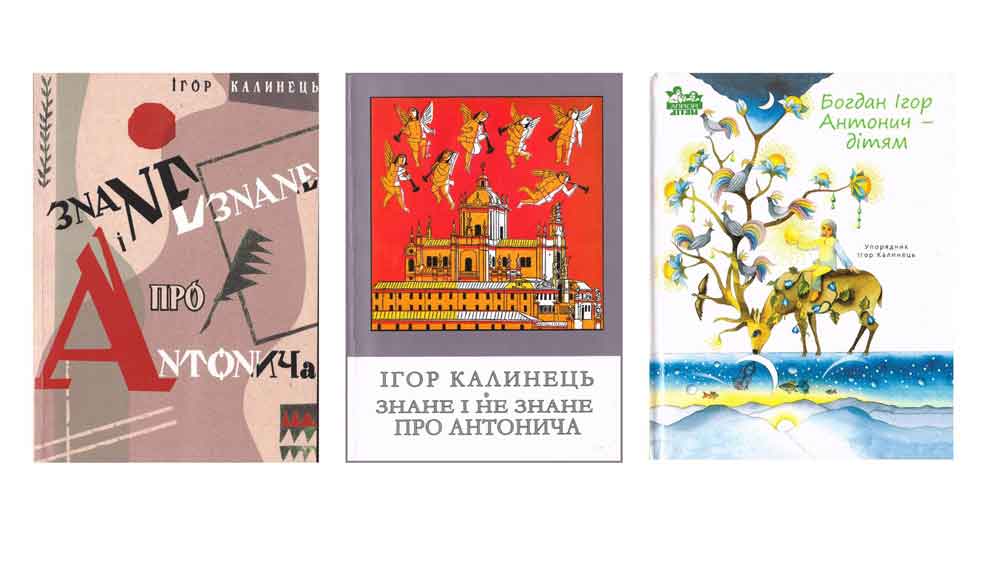Ювіляр багато зробив для повернення в літературу імені Богдана Ігоря-Антонича, зокрема написав розвідку «Знане і незнане про Антонича», кілька передруків якого репрезентовано на виставці (Львів, 2011, 2017), упорядкував збірку творів поета для дітей з розкішними ілюстраціями Вікторії Ковальчук (Львів, 2021). До уваги читачів представлено також інтерв’ю Ігоря Калинця з Юрієм Зайцевим «Одержимість» (Львів, 2002); збірник статей, спогадів, виступів і реплік «Про декого, дещо, і, передовсім, про себе» (Львів, 2016); добірку листів з ув’язнення до доньки Звенислави (Львів, 2017).