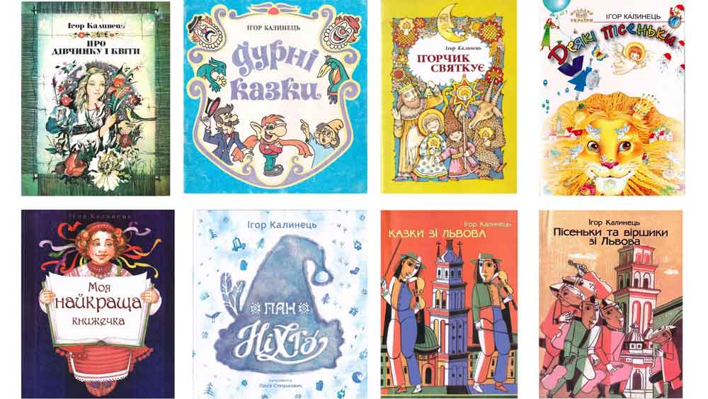 На виставці експоновано чимало видань творів Ігоря Калинця для дітей різного віку, зокрема «Про дівчинку і квіти» (1995), «Деякі пісеньки» (2002), «Моя найкраща книжечка» (2012), «Пісеньки та віршики зі Львова» (Львів, 2014), «Пан Ніхто» (2021) та інші.