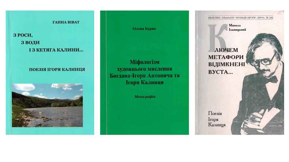 Окремий розділ виставки присвячено працям, що висвітлюють життєвий і творчий шлях знаного письменника, наприклад: монографія «З роси, з води і з кетяга калини…» Ганни Віват (Одеса, 2012), нарис «Ключем метафори відімкнені вуста» Миколи Ільницького (Париж; Львів; Цвікау, 2001) та інші. Репрезентовано видання про родину Калинців, зокрема книжки «Попід Золоті ворота» Петра Шкраб’юка (Львів, 1997), «Українська поезія під судом КҐБ: кримінальні справи Ірини та Ігоря Калинців» (упорядкування Юрія Зайцева; Львів, 2004).