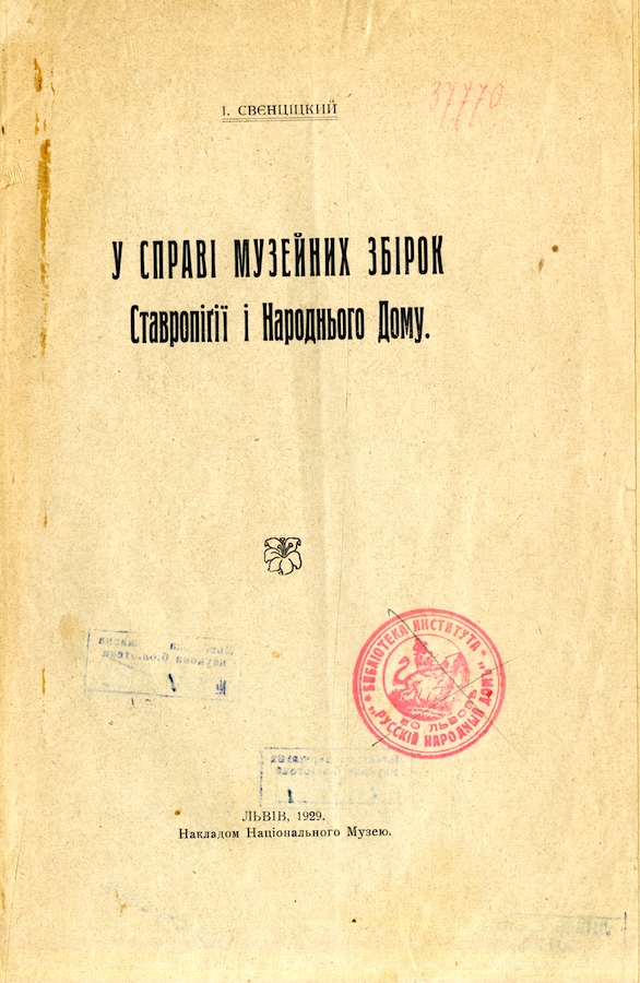 У справі музейних збірок Ставропіґії і Народнього Дому. Львів, 1929.