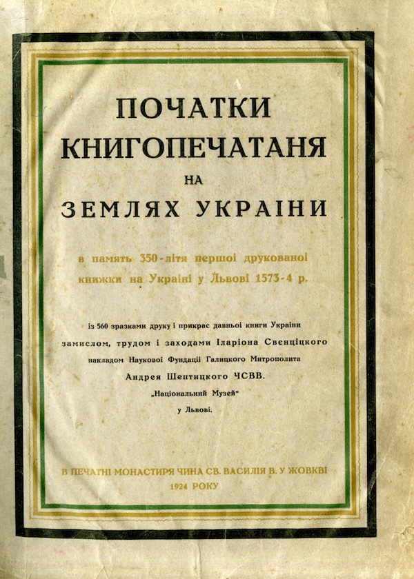 Початки книгопечатаня на землях України: в пам’ять 350-літя першої друкованої книжки на Україні у Львові 1573-4 р. [Жовква], 1924.