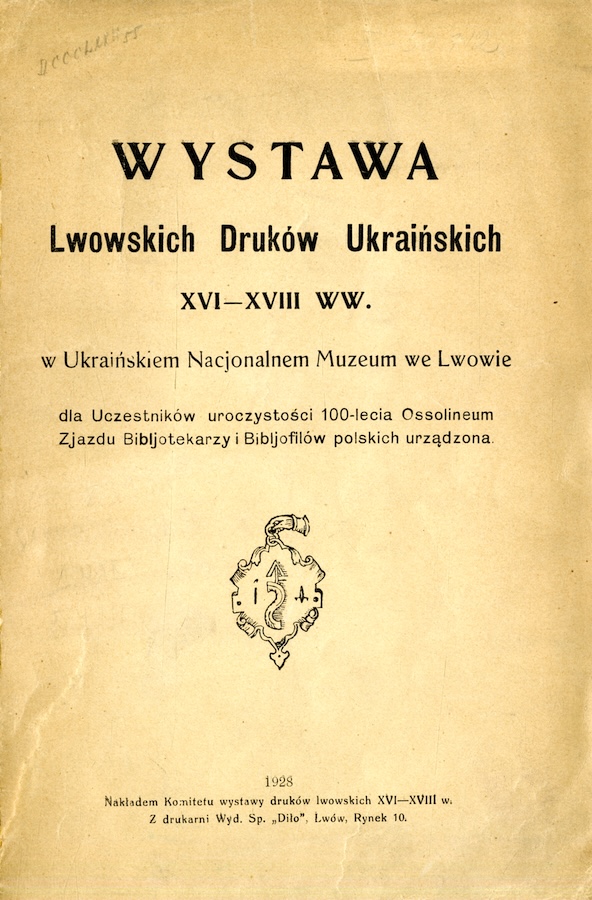 Wystawa Lwoskich Drukόw Ukraińskich XVI–XVIII ww. w Ukraińskiem Nacjonalnem Museum we Lwowie dla Uczestników urоczystości 100-lecia Ossolineum Zjazdu Bibliotekarzy i Bibljofilόw polskich urządzona. Lwόw , 1928.