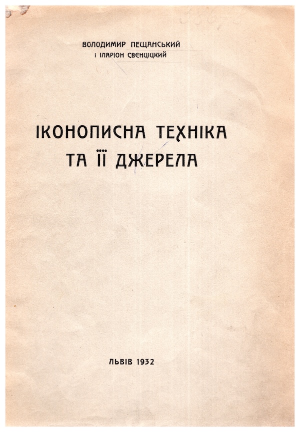 Дещо про джерела іконописної техніки в статті В.Пещанського / Пещанський Володимир і Іларіон Свєнціцкий. Іконописна техніка та її джерела. Львів, 1932.