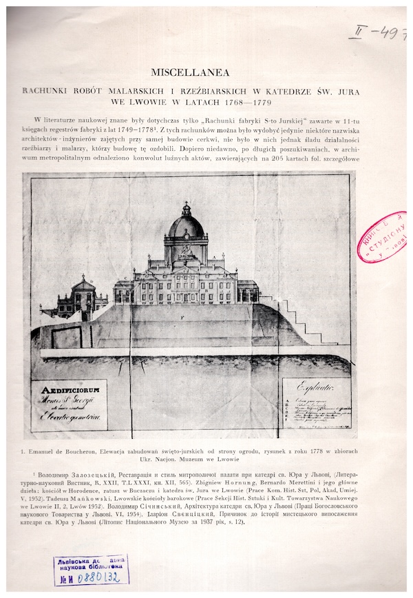 Rachunki robót malarskich i rzeżbiarskich w katedrze sw. Jura we Lwowie w latach 1768-1779. Lwów, 1938.