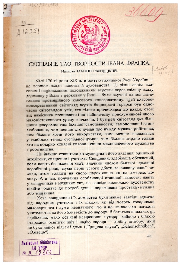 Суспільне тло творчости Івана Франка. Львів, 1930. (Відбитка).