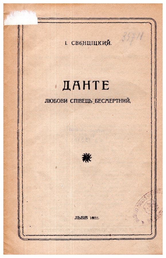 Данте - любови співець бесмертний. Львів, 1922 .